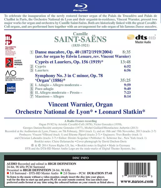 | Artiste | Camille Saint-Saëns | Leonard Slatkin | Vincent Warnier | Orchestre National De Lyon |