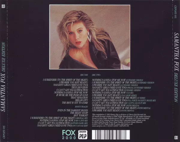 Samantha Fox: Samantha Fox DLX La version sur 2CD en Remasterisé deluxe édition. Cette édition particulière a été publiée en ROYAUME-UNI dans la maison d'édition Cherry Pop En collaboration avec Fox 2000 Le 17 janvier 2019.