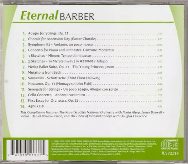 | Artiste | Samuel Barber | Royal Scottish National Orchestra | Marin Alsop | James Buswell | Douglas Lawrence | Choir Of Ormond College | Daniel Pollack |