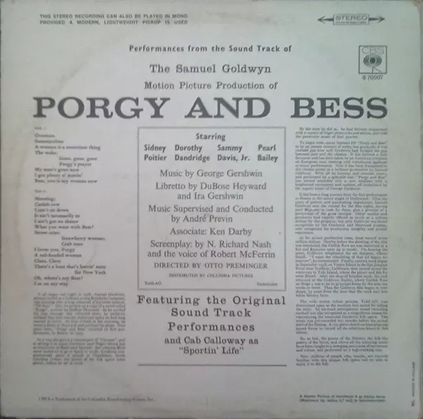 | Titre | The Samuel Goldwyn Motion Picture Production Of Porgy And Bess |