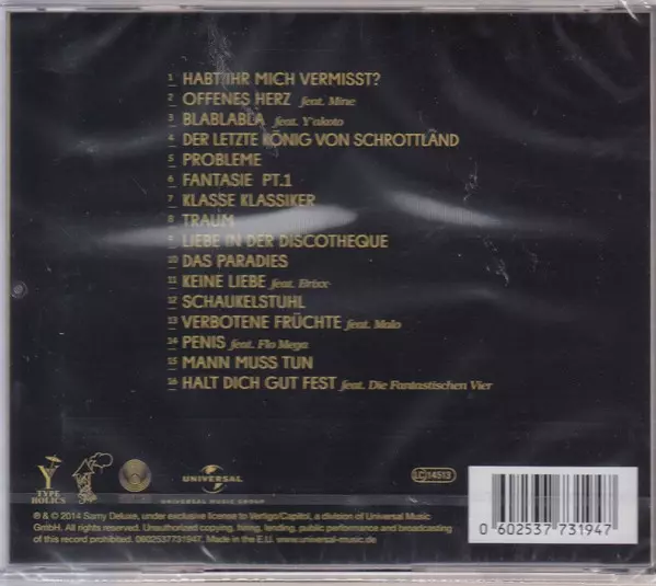 Samy Deluxe: Männlich La version sur CD en Norme édition. Cette édition particulière a été publiée en Allemagne, Autriche et Suisse dans la maison d'édition Vertigo En collaboration avec Universal Music Group Le 25 mars 2014. Album peut être classé dans un genre Hip Hop.