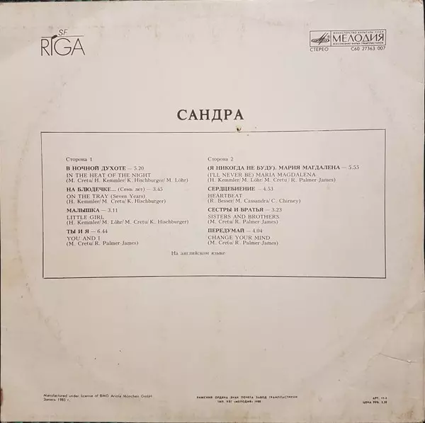 | Artiste | Sandra |