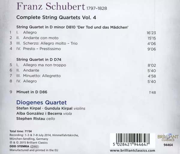 | Titre | Complete String Quartets Vol. 4 (String Quartet D74 / String Quartet D810 'Der Tod Und Das Mädchen' / Minuet D86) |
