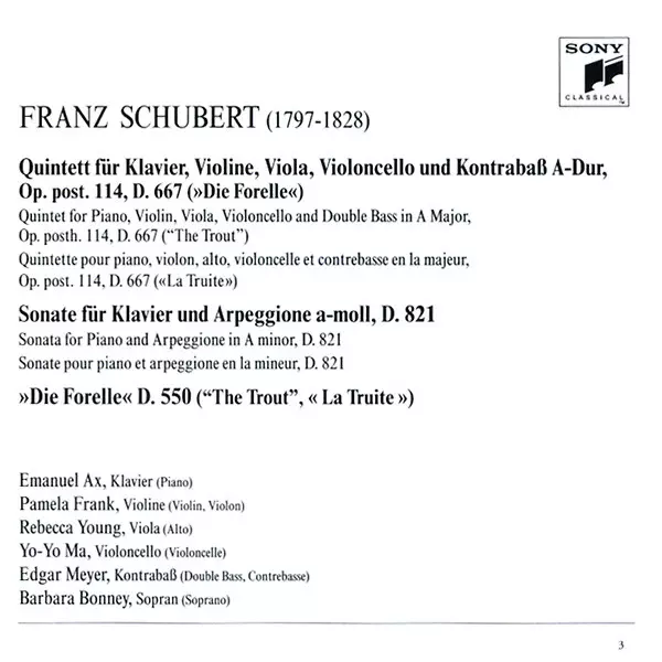 | Titre | Quintet Op. 114 "The Trout" • Sonata "Arpeggione" |