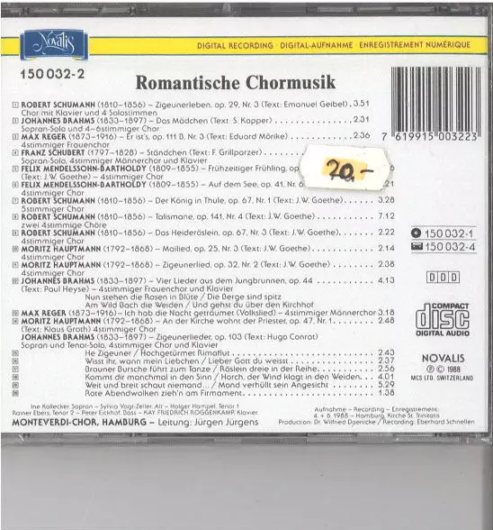 | Artiste | Johannes Brahms | Franz Schubert | Robert Schumann | Felix Mendelssohn-Bartholdy | Max Reger | Monteverdi-Chor Hamburg | Jürgen Jürgens | Moritz Hauptmann |