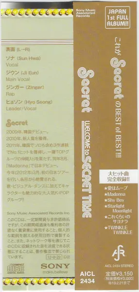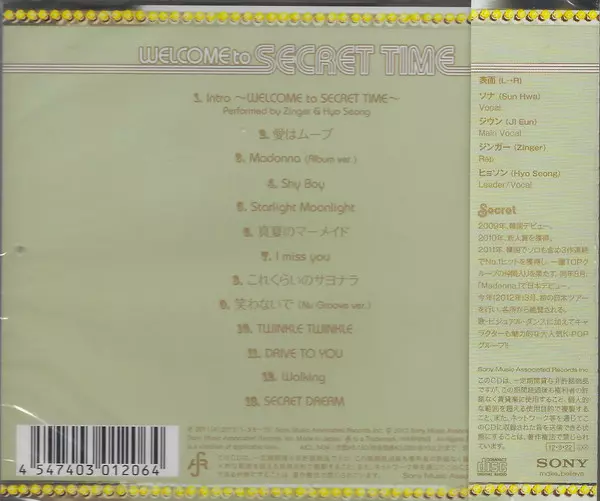 Secret: Welcome To Secret Time La version sur CD en Norme édition. Cette édition particulière a été publiée en Japon dans la maison d'édition SAR (3) Le 6 septembre 2011. Album couvre tous les genres Pop et J-pop.