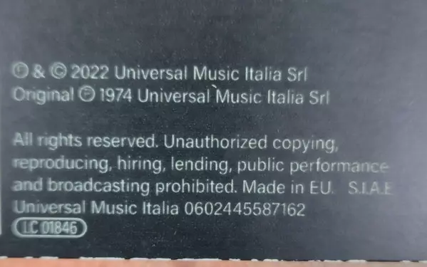 | Maisons d'édition | Universal Music Italia s.r.l. |