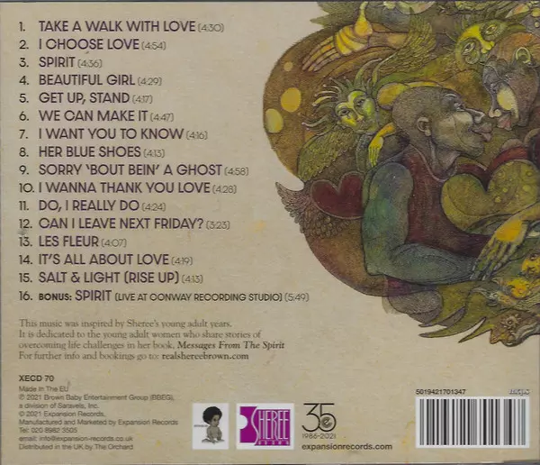 Sheree Brown: Messages From The Spirit...The Collective La version sur CD en Norme édition. Cette édition particulière a été publiée en ROYAUME-UNI dans la maison d'édition Expansion Le 12 mars 2021. Album peut être classé dans un genre Funk / Soul.