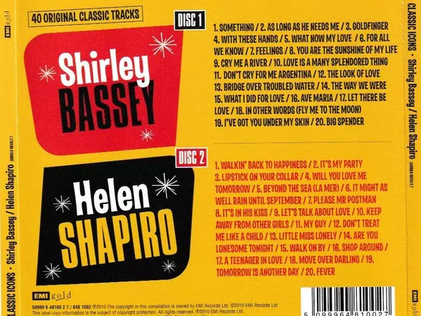 | Titre | Classic Icons • Shirley Bassey And Helen Shapiro |