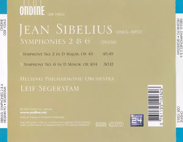 | Artiste | Jean Sibelius | Helsinki Philharmonic Orchestra | Leif Segerstam |