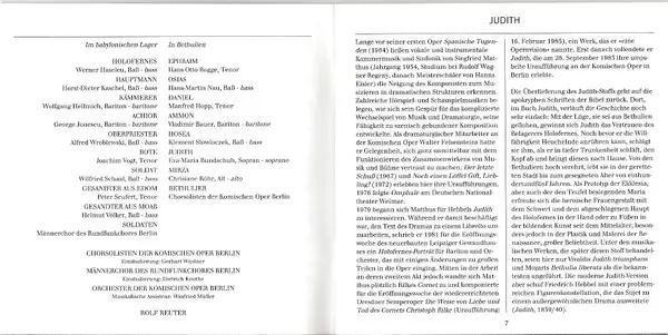 Siegfried Matthus: Judith La version sur 2CD en Norme édition. Cette édition particulière a été publiée en Allemagne dans la maison d'édition Berlin Classics Le 21 juillet 1998. Album couvre tous les genres Musique classique, Opéra et Contemporary classical.