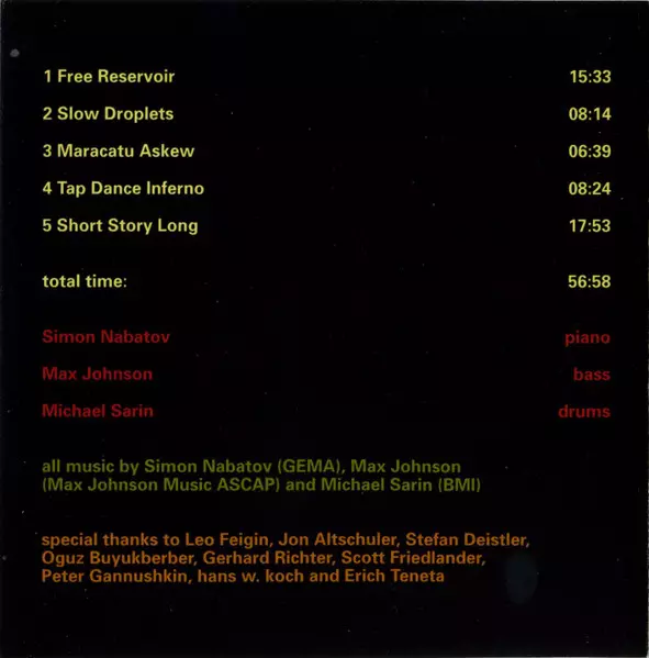 | Artiste | Simon Nabatov | Michael Sarin | Max Johnson |
