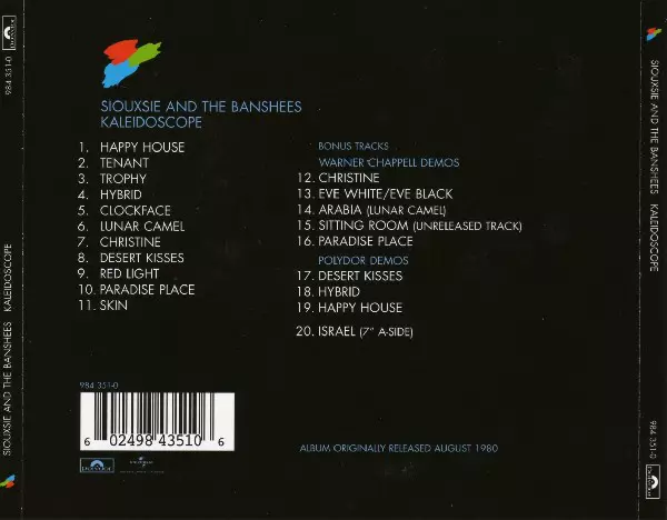 Kaleidoscope is the debut studio album by English rock band Siouxsie & the Banshees. It was released on 4 October 1980 on the Polydor record label. The album was produced by Nigel Gray, who also produced the band's first single "Hong Kong Garden". The album Kaleidoscope reached number 12 in the UK album chart and was awarded a British Phonograph...