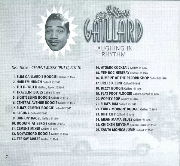 | 3-6 | Slim Gaillard And His Boogiereeners: Central Avenue Boogie | 2:42 min | |