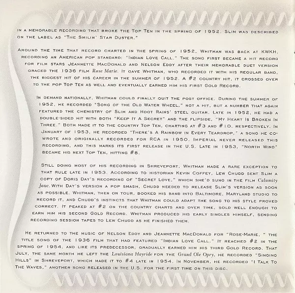 | Artiste | Slim Whitman |