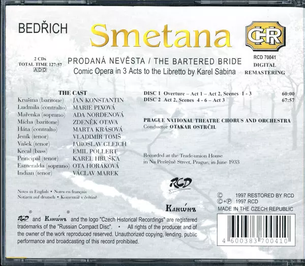 | Artiste | Bedřich Smetana | Sbor Národního Divadla | Orchestr Národního Divadla | Otakar Ostrčil | Emil Pollert | Ada Nordenová | Jaroslav Gleich | Vladimír Toms |