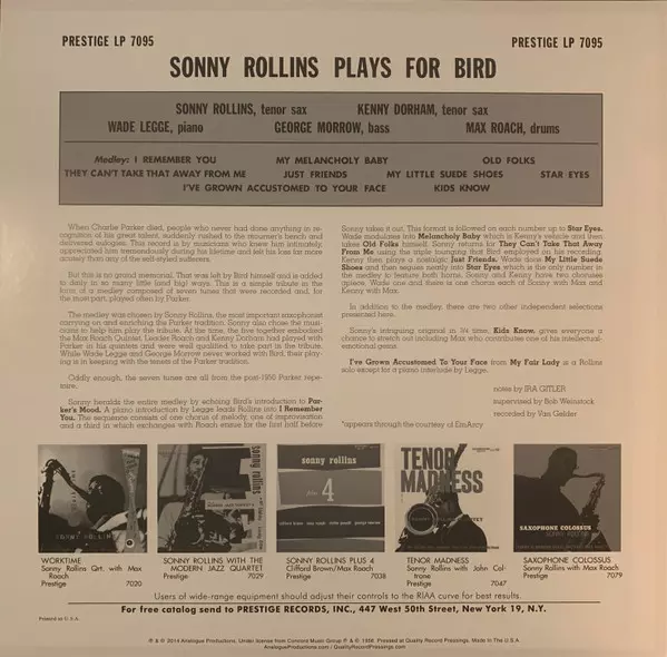 | Titre | Rollins Plays For Bird |