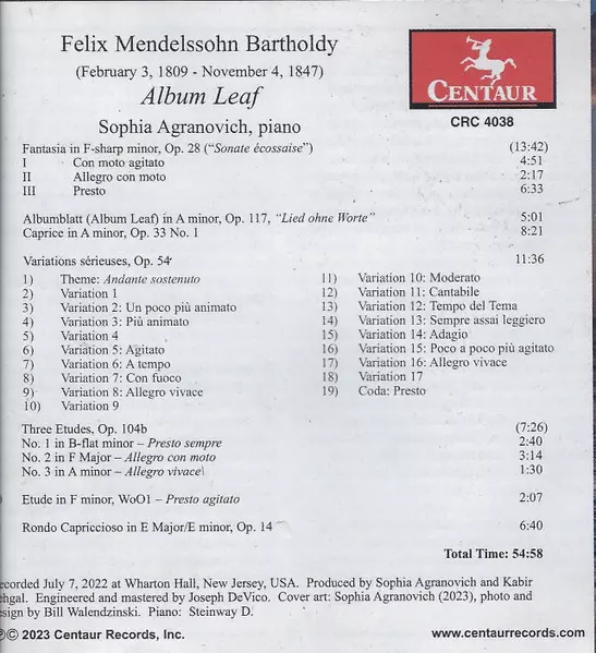 | Titre | Album Leaf: Piano Works By Felix Mendelssohn |