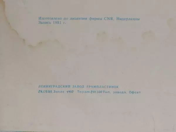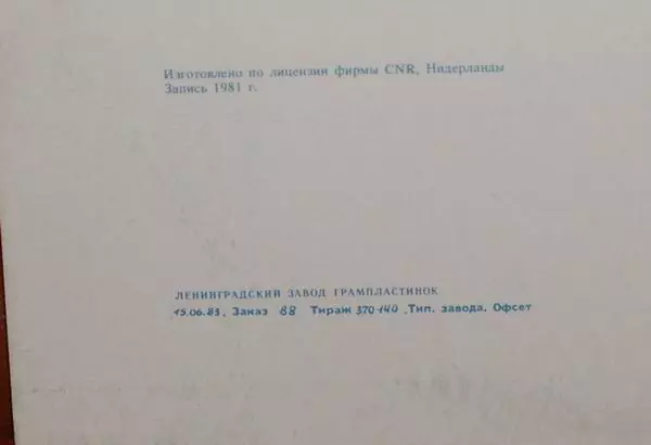 | Plus d'informations sur les disques vinyles | 1983 Original Melodiya Red Label |