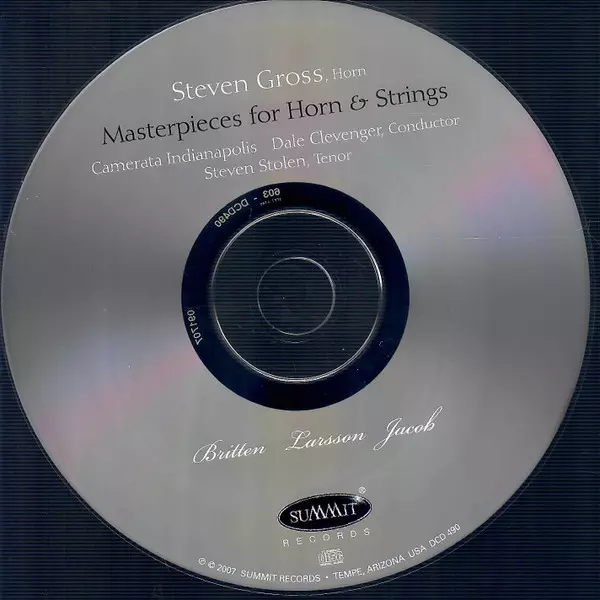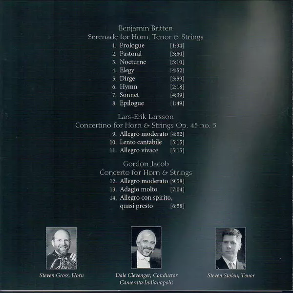 | Artiste | Benjamin Britten | Lars-Erik Larsson | Gordon Jacob | Steven Gross | Dale Clevenger | Steven Stolen | Camerata Indianapolis |