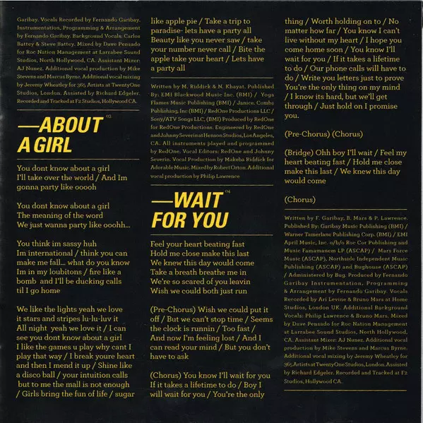 Mixed By [Additional Vocal Mixing Assisted By] Richard Edgeler | Mixed By [Additional Vocal Mixing By] Jeremy Wheatley | Mixed By, Recorded By Ari Levine | Music By [All Music By], Instruments [All Instruments Played By] Ari Levine, Bruno Mars | Producer The Smeezingtons | Producer [Additional Vocal Production By] Marcus Byrne, Mike Stevens | Written-By Ari Levine, Bruno Mars, Phillip Lawrence