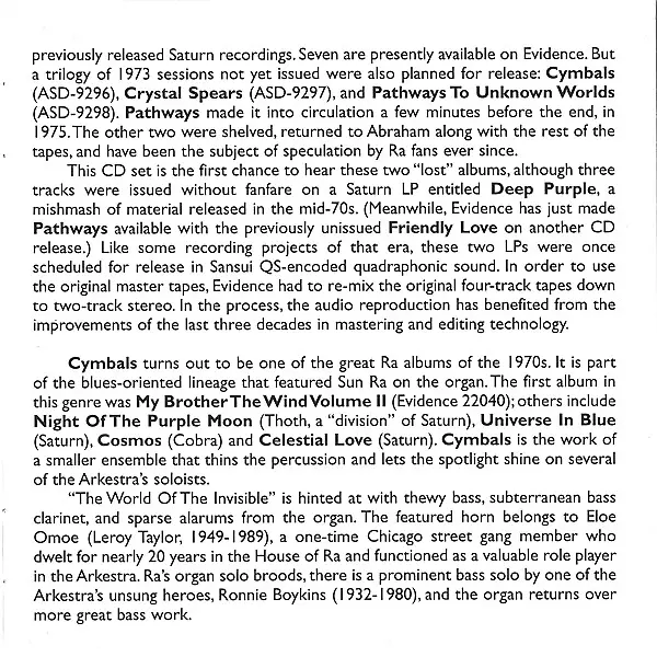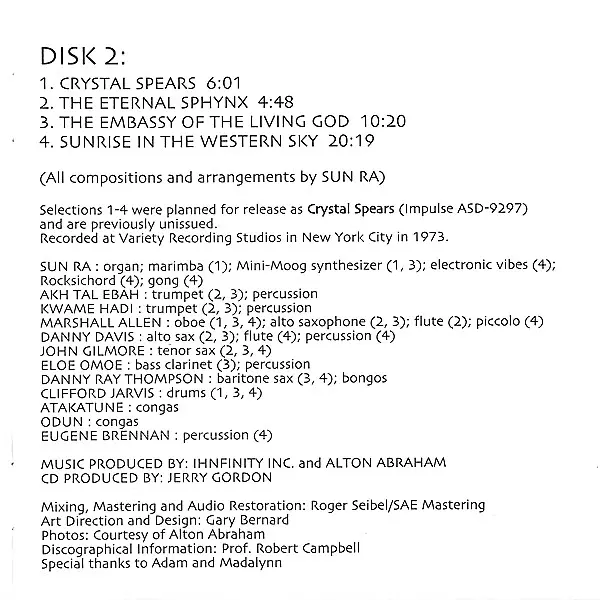 | Titre | The Great Lost Sun Ra Albums (Cymbals & Crystal Spears) |