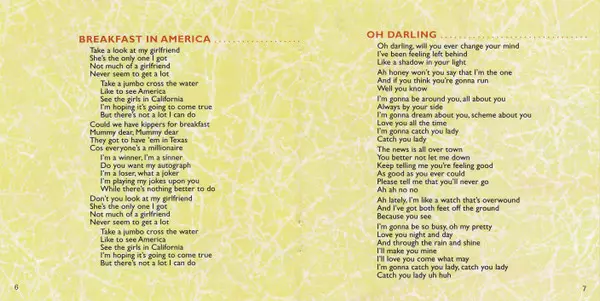 Supertramp were already extremely successful with their first five albums, but Breakfast In America exceeded all expectations. It sold millions of copies worldwide, won two Grammy Awards and charted three times on The Logical Song, Take the Long Way Home and Goodbye Stranger. Supertramp delivers catchy, condensed and cleverly constructed pop hit...