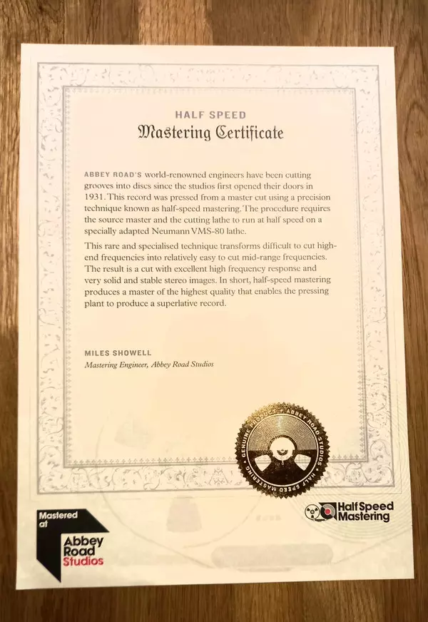 | Plus d'informations sur les disques vinyles | 180g Remastered Half Speed Mastered Vinyl |