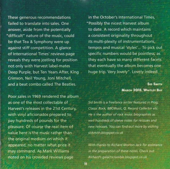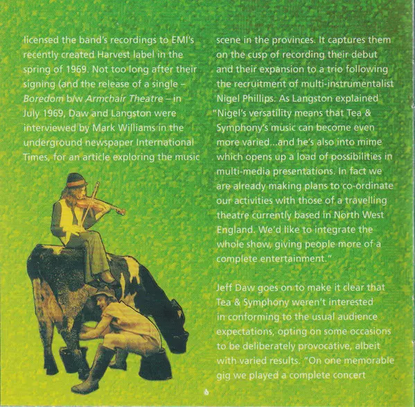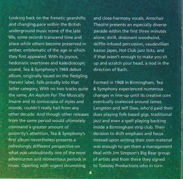 Tea & Symphony: An Asylum For The Musically Insane La version sur CD en Remasterisé édition. Cette édition particulière a été publiée en L'Europe dans la maison d'édition Esoteric Recordings Le 4 septembre 2015. Album couvre tous les genres Rock, Folk, World, & Country, Folk Rock, Psychedelic rock et Blues-Rock.