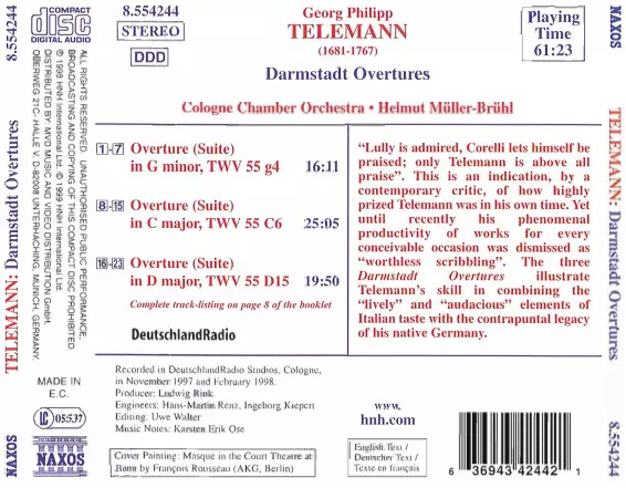 | Titre | Darmstadt Overtures (Suites) |