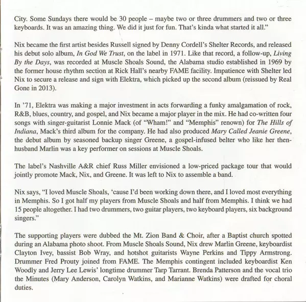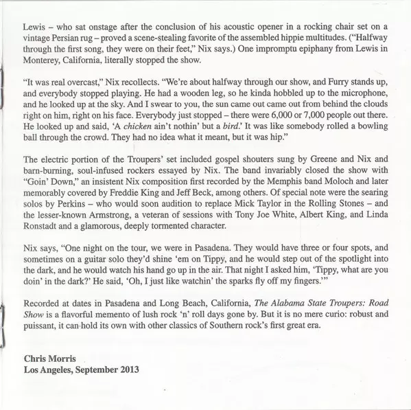 | Artiste | Furry Lewis | Don Nix | The Alabama State Troupers | Jeanie Greene | The Mt. Zion Band | Mount Zion Singers |