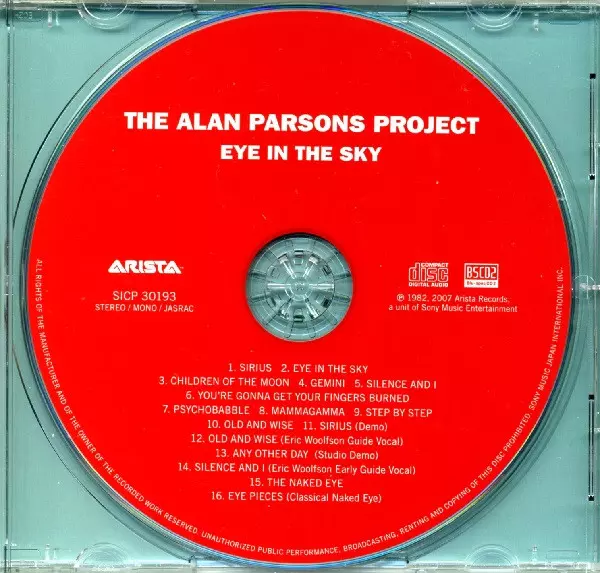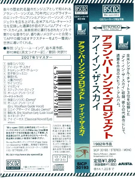 The Alan Parsons Project: Eye In The Sky La version sur CD en Remasterisé édition. Cette édition particulière a été publiée en Japon dans la maison d'édition Arista Le 30 juillet 2013.