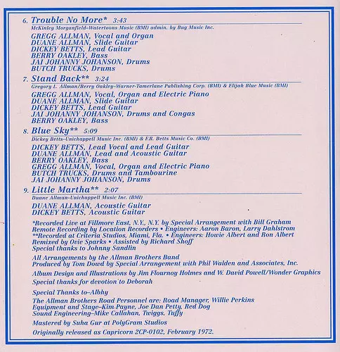 | Artiste | The Allman Brothers Band |