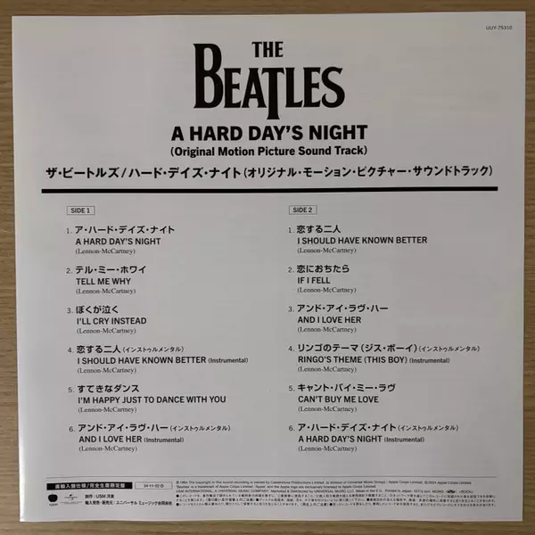 | Titre | A Hard Day's Night (Original Motion Picture Sound Track) |