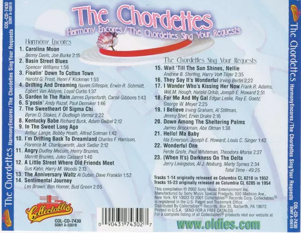 | Titre | Harmony Encores / The Chordettes Sing Your Requests |