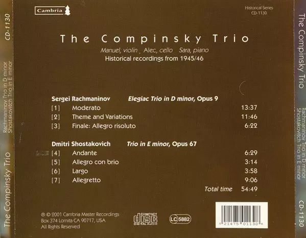 | Artiste | Dmitri Shostakovich | Sergei Rachmaninoff | The Compinsky Trio |