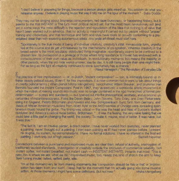 The Ex: Instant La version sur 2CD en Norme édition. Cette édition particulière a été publiée en L'Europe dans la maison d'édition Ex Records Le 28 mars 2011. Album couvre tous les genres Rock, Musique électronique, Jazz, Experimental, Avant-garde et Free Improvisation.