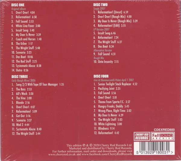 The Fall: Reformation! Post - TLC DIGI La version sur 4CD en Remasterisé digipack édition. Cette édition particulière a été publiée en L'Europe dans la maison d'édition Cherry Red Le 22 mai 2020. Album couvre tous les genres Rock, Alternative rock et Indie Rock. Expanded Digipack Edition.