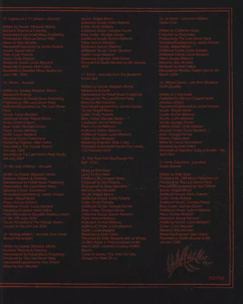Bass Guitar, Vocals [Additional] Georgia Davies | Bass Trombone Alistair Goodwin (2) | Drums James Ford | French Horn Robyn Blair | Lead Guitar, Vocals [Additional] Emily Roberts (5) | Lead Vocals, Guitar Lizzie Mayland | Score, Conductor, Vocals [Additional], Organ, Piano, Synthesizer Aurora Nishevci | Trombone Chris Brewster (3) | Trumpet Bradley Jones (3), Lucy Humphris | Vocals [Additional] Abigail Morris