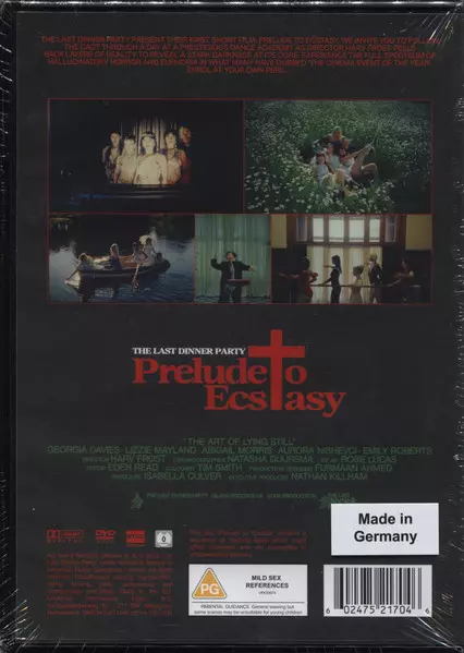 The Last Dinner Party: Prelude To Ecstasy DLX La version sur CD/DVD en deluxe édition. Cette édition particulière a été publiée en L'Europe dans la maison d'édition Island Records Le 11 octobre 2024. Album couvre tous les genres Rock, Pop, Scène et écran, Indie Rock, Pop Rock, Soundtrack et Alt-Pop.