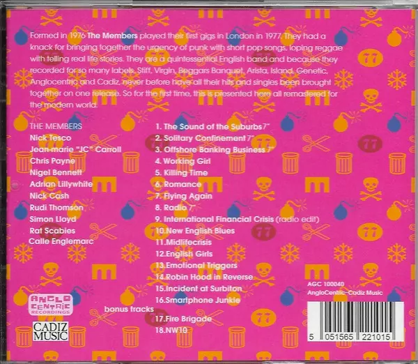 The Members: Greatest Hits - All The Singles La version sur CD en Norme édition. Cette édition particulière a été publiée en ROYAUME-UNI dans la maison d'édition AngloCentric Records En collaboration avec Cadiz Music Le 17 décembre 2021. Album couvre tous les genres Rock, Reggae, New Wave, Post-Punk et Punk.