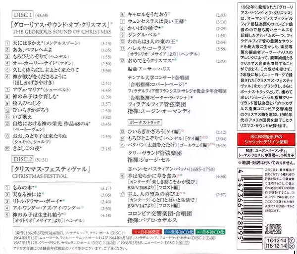 | Artiste | The Philadelphia Orchestra | Eugene Ormandy | The Temple University Choirs | St. Francis De Sales Boychoir |