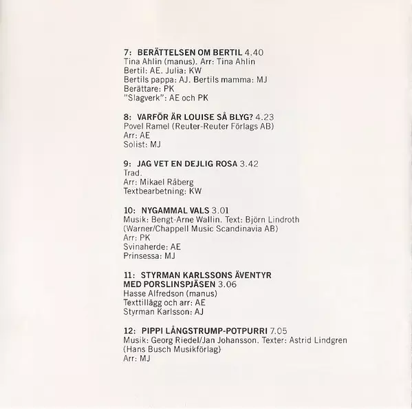 Arranged By Margareta Jalkéus | Lyrics By Astrid Lindgren | Music By Georg Riedel, Jan Johansson