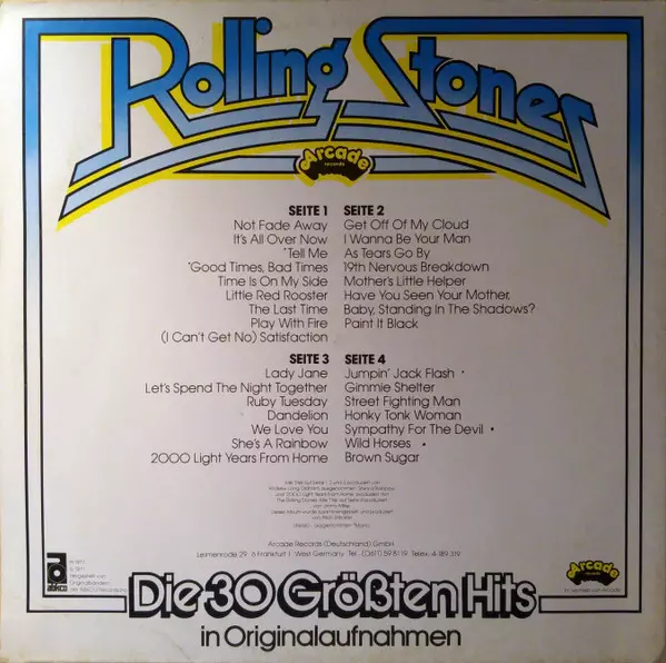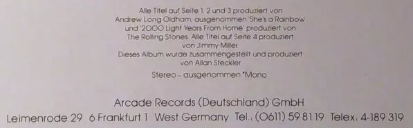 | Plus d'informations sur les disques vinyles | 1977 Original Gatefold Compilation — Arcade (Germany) |