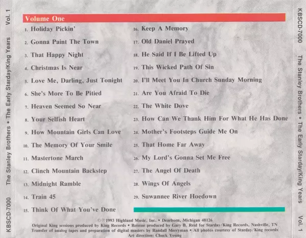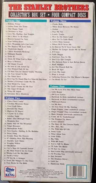 The Stanley Brothers: The Early Starday/King Years 1958-1961 La version sur 5CD en Norme édition. Cette édition particulière a été publiée en ÉTATS-UNIS dans la maison d'édition King Records (3) Le 18 janvier 1995. Album couvre tous les genres Folk, World, & Country, Bluegrass et Gospel. Box Set.