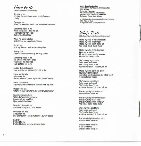 Bass Al Berry | Drums Larry Aberman | Guitar Jimmie Vaughan | Piano Richard Hilton | Vocals, Guitar Stevie Ray Vaughan | Written-By Doyle Bramhall, Stevie Ray Vaughan