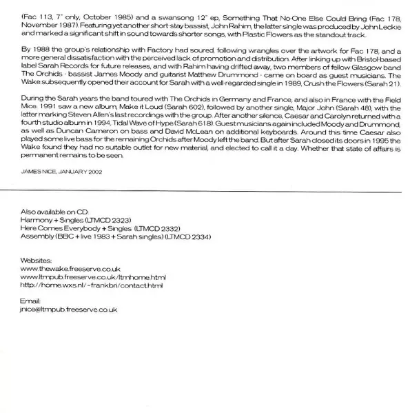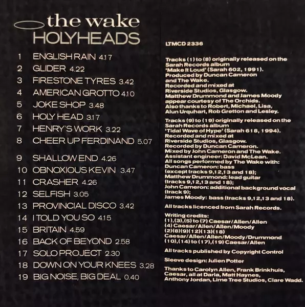 The Wake: Holyheads La version sur CD en Norme édition. Cette édition particulière a été publiée en ROYAUME-UNI dans la maison d'édition LTM (4) Le 1 février 2002. Album couvre tous les genres Rock, New Wave, Post-Punk et Indie Rock.