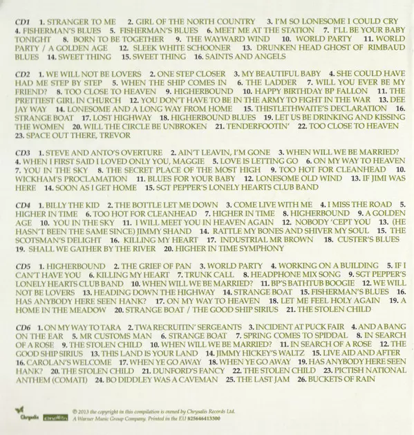 The Waterboys: Fisherman's Box La version sur 6CD/Coffret en Norme édition. Cette édition particulière a été publiée en L'Europe dans la maison d'édition Chrysalis En collaboration avec Ensign Le 9 février 2018. Album couvre tous les genres Folk Rock, Irisch Folk, Big Music et Celtic Rock.