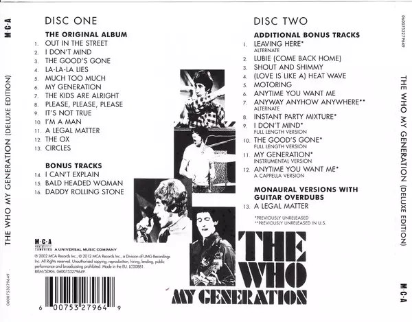 When The Who's My Generation was released on Brunswick Records on December 3, 1965, a musical revolution was programmed. Years later, for example, the music database All Music rated it: 'It was an explosive debut album and the hardest hitting 'mod pop' record with the strongest guitars and drums ever recorded'. To this day, My Generation is stil...