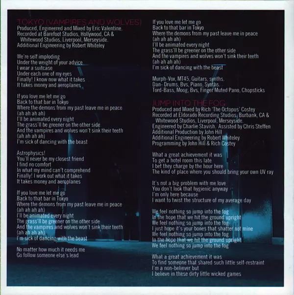 Bass Tord Overland-Knudsen | Engineer [Assisted By] Chris Steffen | Engineer [Engineered By] Charlie Stavish | Lead Vocals [Lead Vox], Synthesizer [Moog] Matthew Murphy | Mixed By Rich Costey | Producer [Additional Production] John Hill (14) | Producer [Produced] Rich Costey | Programmed By [Programming] John Hill (14), Rich Costey | Synthesizer [Synths] Dan Haggis, Tord Overland-Knudsen